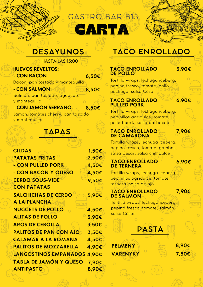Welcome to GASTRO BAR B13, a hidden gem nestled in the heart of Valencia, where culinary dreams come alive. Located at C/ de les Illes Canàries, 52, this café and bar seamlessly combines the comfort of a hamburger restaurant with a sophisticated dining experience.